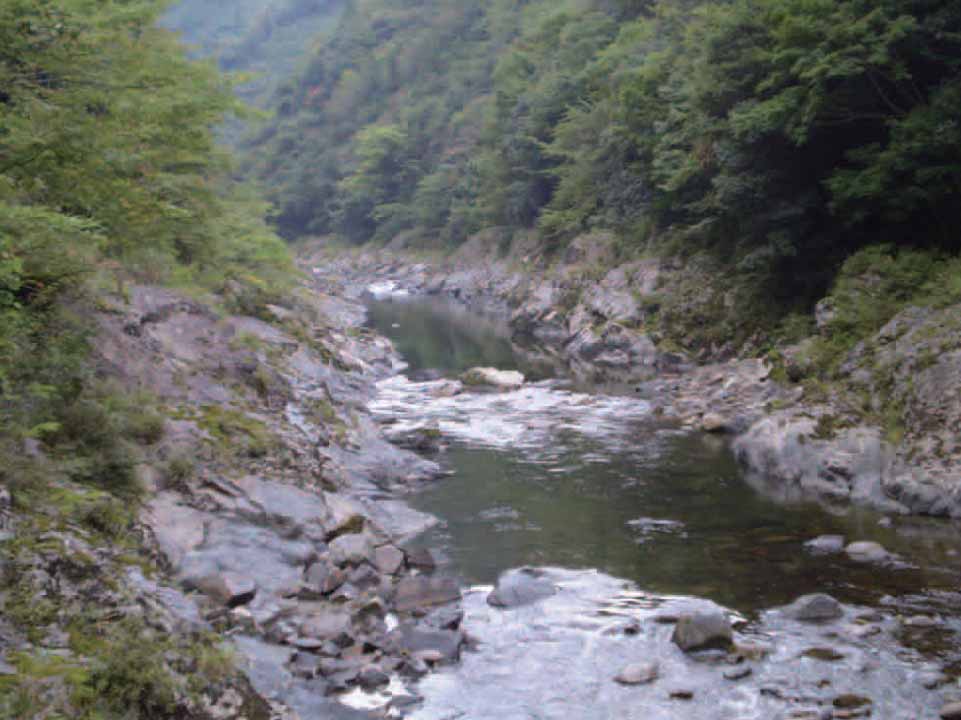 →国道9号横田町交差点から国道488号に入り,約16km進むと秋冷橋に着きます.国道から河岸へは数ヶ所で降りられます.道路が狭いので車を止める場所に注意してください.また,降雨時には河川水位が急激に上昇するところですので,河床に降りるときには天候に注意してください.