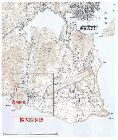 隠岐空港移転・拡張工事により周辺の地形が大幅に変化したため、隠岐の島町1:5000森林基本図を添付しました。 キーワード:重栖層 流紋岩質火砕岩 火道 黒曜石 中新世 (執筆:村上 久) [みどころ | 交通 | 関連情報 | 指定 | 地質学的な意義] みどころ
