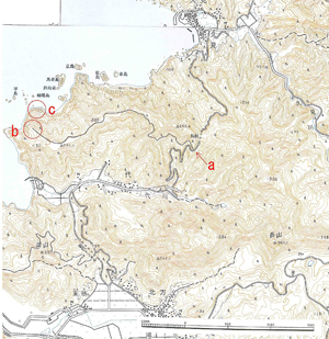 これより上部は柱状節理や流理構造に沿って岩盤が崩落し、 ![]() 写真3:馬背島の柱状節理・海蝕洞・タフォニ(写真右端) 馬背島ではこの柱状節理が最も良く発達しています。ここでは節理に沿った浸食で形成された海蝕洞が見られます。 また海面よりもかなり高い位置に楕円形をした窪みがたくさんできているのがわかります(写真3)。 これは"タフォニ"と呼ばれ、岩盤の表面から水が蒸発する過程で、水に溶けていた塩類の結晶が成長し、 その成長する圧力で岩盤が破壊される現象(塩類風化)と考えられています。 これは海水の飛沫を受ける海岸域や砂漠などの乾燥地域、また内陸の山地にもしばしば見られます。 ![]() 写真4:海岸の浸食地形 鉄砲岩(写真中央)と馬背島(写真右端)の間に見えるローソク島 この"タフォニ"が成長するとオーバーハングした不安定斜面が形成され、岩盤の崩壊や落石が発生します。同じ環境が続くと、岩盤の崩壊したあと、 また"タフォニ"が形成されて同じ事が繰り返され、浸食が進行していきます。ローソク島周辺に見られる小島は、もともと陸地と繋がっていたものが、 さまざまな浸食作用によって岩盤が崩落し、運び去られて現在のような姿に変わったものなのです(写真4)。 アクセス 自家用車あるいはレンタカーを利用する場合は、西郷港から国道485号を通って郡(こおり), 関連する情報隠岐の島町: http://www.town.okinoshima.shimane.jp/ 天然記念物などの指定情報大山隠岐国立公園 地質学的な意義中新世の終わり頃は島後の歴史上最も激しい火山活動が起きた時代です.このときに噴出した溶岩のその後の風化・浸食によって作られた特異な地形や海岸線の後退の様子が観察できます。 |