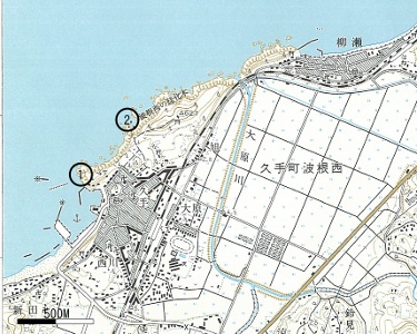 [みどころ | 交通 | 関連情報 | 指定 | 地質学的な意義] みどころ大田市久手港~波根にかけての海岸には海食崖が発達し、崖には約1500万年前(中期中新世)に堆積した、大森層の砂岩、土石流堆積物、2枚の酸性軽石凝灰岩がみられます。 久手港付近の海岸では淡黄色の酸性軽石凝灰岩中に、暗色の安山岩質溶結凝灰岩の巨大岩塊が含まれているのが観察できます。最大の岩塊は長さ60mにもなり、遠くからみて初めて岩塊であることがわかる大きさです(写真1)。 この地層は火山から噴出した軽石流(主に軽石からなる火砕流)が堆積したもので、おそらく、もともとあった安山岩質溶結凝灰岩からなる山体を破砕し取り込みながら海に流れ込んだものと考えられ、同時に当時海岸にあったであろう円礫も取り込んで堆積しています。 この酸性軽石凝灰岩に含まれる巨大岩塊や円礫はいずれも単一の安山岩質なものばかりであり、酸性軽石凝灰岩が噴出する前は安山岩の火山地帯であったと考えられます。 波根西の海岸には大森層の土石流堆積物中に珪化木がみられ、国の天然記念物に指定されています(写真2)。よく探すと、珪化木や炭化木が付近の地層のあちこちに含まれていて、長いものは土石流の流れの方向を、短いものは流れに直交する方向に並んでおり、短いものは土石流とともに転がるように、長いものは土石流に乗って流されるように運ばれたことが想像できます。 なお、天然記念物の珪化木付近の崖では、標高10m位のところに人頭大の円礫を含む第四紀の海岸段丘堆積物もみられます。この海岸段丘堆積物の小さな礫の中には、チャートなどの基盤岩に由来する礫も含まれています。さらに、この崖から100mほど陸側に入ったところの山腹の傾斜は緩くなっており、細かな砂が多くみられますが、この砂は緩い傾斜の山腹に砂丘をつくっているのです。 アクセスJR山陰本線久手駅より徒歩10~15分。自家用車の場合、国道9号沿いの珪化木の案内看板が目印。 関連する情報しまね観光ナビ:https://www.kankou-shimane.com/ 文化遺産オンライン:http://bunka.nii.ac.jp/SearchDetail.do?heritageId=77806 天然記念物などの指定情報波根西の珪化木は国指定の天然記念物(昭和11年9月3日) 地質学的な意義巨大岩塊を運ぶ極めて激しい「岩屑なだれ」を発生させた火山活動としては、1980年のセントヘレンズ火山の噴火が有名です。およそ1,500万年前には久手~波根海岸近くにあった火山がセントヘレンズ火山のように山体を壊すような大噴火を起こし、大量の軽石を含む火砕流を発生させました。この火砕流は崩れた山体の一部を巨大岩塊として取り込んだり、山腹の林の樹木を巻き込んで海まで運びました。さらに、海岸付近では波で円磨された礫を取り込んだりしました。ここでみられる地層はこのような激しい火山噴火によって作られたものです。 |