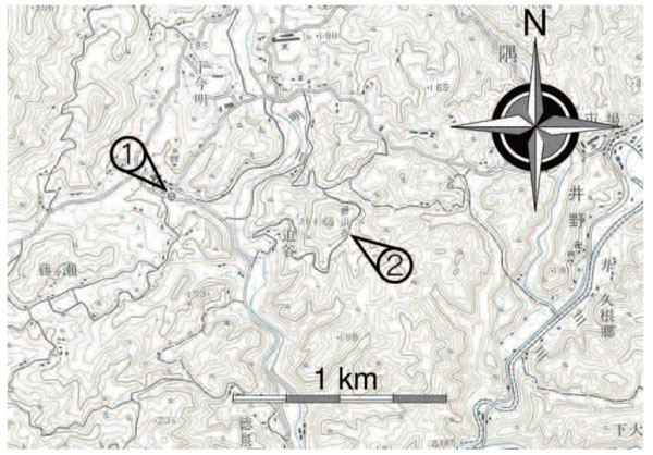 [みどころ | 交通 | 関連情報 | 指定 | 地質学的な意義] みどころ野山岳(のやまだけ)は新生代のアルカリ玄武岩よりなる山で、周囲との標高差100mほどの小さな山です。かつてはその形から大糞山(おおぐそやま)と呼ばれていました(写真1)。 西南日本内帯に広く分布する新生代のアルカリ玄武岩はしばしば超塩基性~塩基性捕獲岩を多量に包有しており、上部マントルや地殻下部の情報をもたらすものとして重要なものです。しかし多くのアルカリ玄武岩体は侵食などのために、分布が貧弱であったり露出が不十分なものばかりです。ここ野山岳には市道の建設工事にともなう良好な露頭があり、観察に適しています。現在は多少、植物も繁茂していますが、道路脇には貴重な露頭が残されております(写真2)。