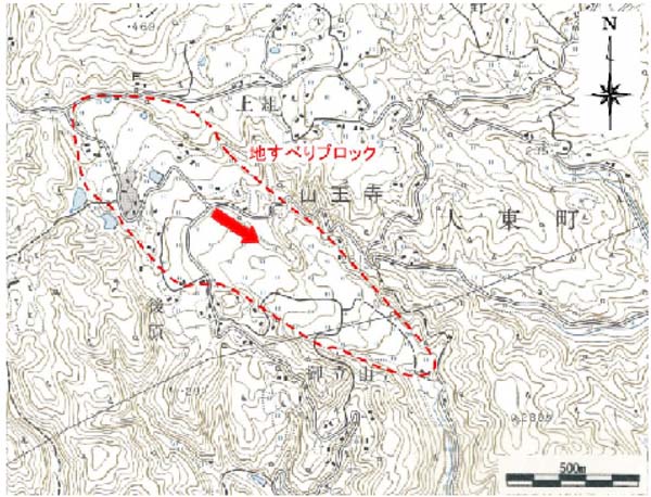 [みどころ | 交通 | 関連情報 | 指定 | 地質学的な意義] みどころ山王寺地区の地すべり(写真1)は,昭和33年に地すべり等防止法が施行されると,島根県では最初の地すべり防止区域に指定された,県内でも規模の大きい地すべり地の1つです。 山王寺の地すべりブロックは,地形図からもわかるように,周辺の等高線に比べて等高線の間隔が開いた独特の地すべり地形を示しています。これまでの間に少しずつ地すべりが発生し,周囲の斜面から崩落した土砂(崩土)が下方へ移動してきたと考えられています。 地すべり地は緩傾斜面になっています。この緩傾斜面は崩土によって構成されていますが、崩土は新第三系中新統の久利層とよばれる泥岩(写真2)の上に重なっています。 この泥岩の存在がこうした大きな地すべり地を形成する原因となったと考えられています。さらにこの泥岩が地すべりを起こしやすい原因としては,泥岩の層理面が斜面方向に傾斜していること(流れ盤構造),地下水の作用によりさらに弱くなりやすいこと,などもあげられます。 ところで,長年の地すべりによりできた緩斜面は水田として利用され,緩斜面に沿って棚のようになっているので“棚田”と呼ばれています(写真3)。ここの棚田は平成11年に農林水産省の「日本の棚田百選」に選ばれました。耕作地を維持管理し良質な米を生産し,水源涵養の機能も果たし,また,農村風景として周囲の景観に溶け込んでいます。 自然現象である地すべりと人間生活がうまく共生している例ではないでしょうか。 アクセス自家用車利用では,松江市街から主要地方道松江木次線を須佐神社で左折,一般県道海潮宍道線を「棚田展望台」標識案内で約30分 関連する情報島根の棚田 http://www.pref.shimane.lg.jp/industry/norin/seibi/tanada/ 天然記念物などの指定情報日本の棚田百選 地質学的な意義本地域の地質は,流紋岩質溶結凝灰岩を主とするいわゆる白亜紀火山岩類,黒雲母花崗岩を基盤岩とし,これを不整合の関係で広く新第三系が覆っています。 新第三系は中新統の波多層を最下部層とし,これを不整合に川合層の砂岩,礫岩が覆い,さらにこれを整合的に久利層の泥岩,流紋岩質凝灰岩が被覆します。これらは不整合に大森層の安山岩,礫岩によって覆われます。 地すべり母岩の泥岩は,モンモリロナイト,イライトとの混合層鉱物を主とするものです。 |